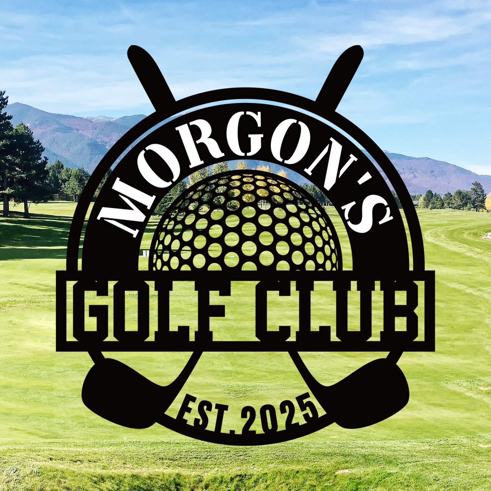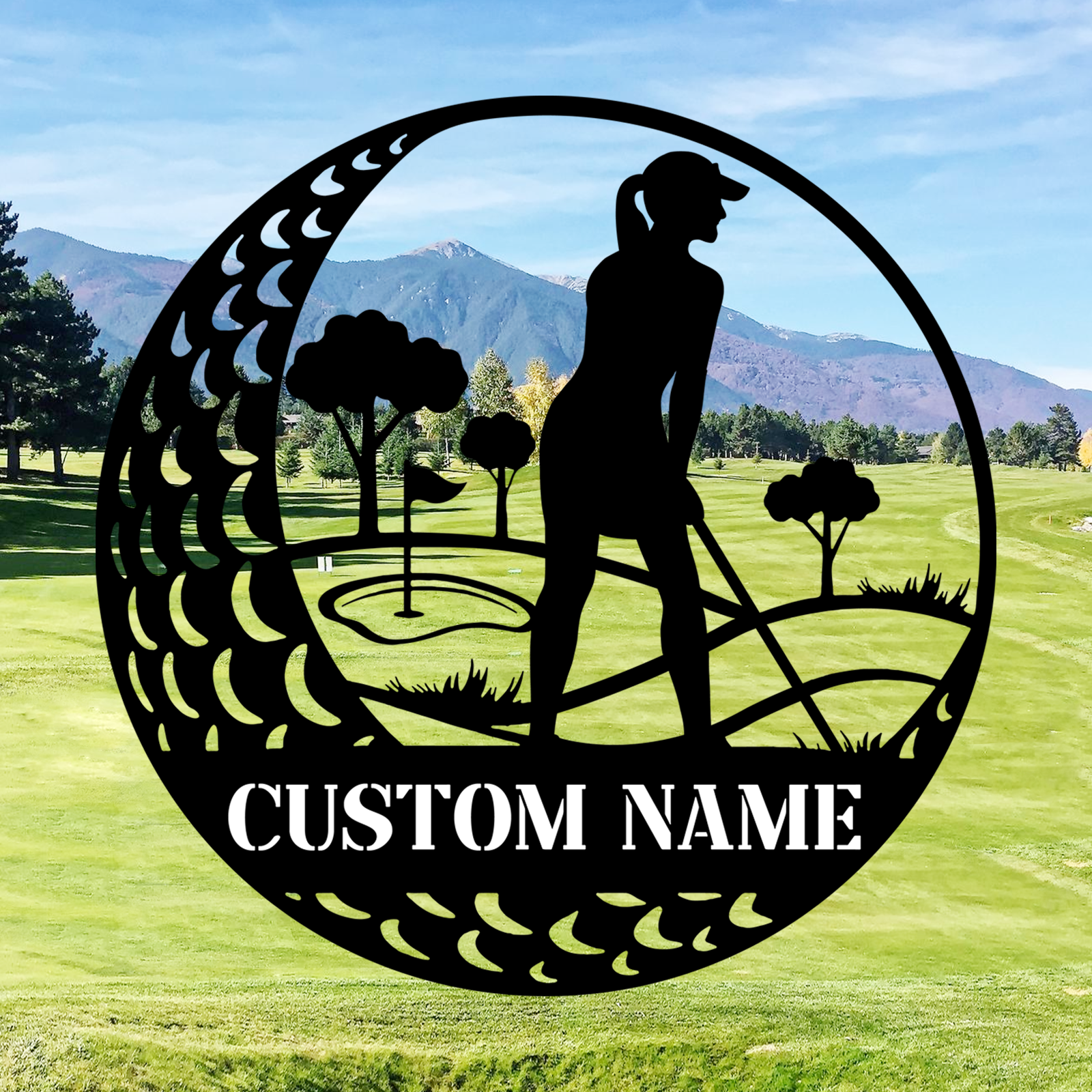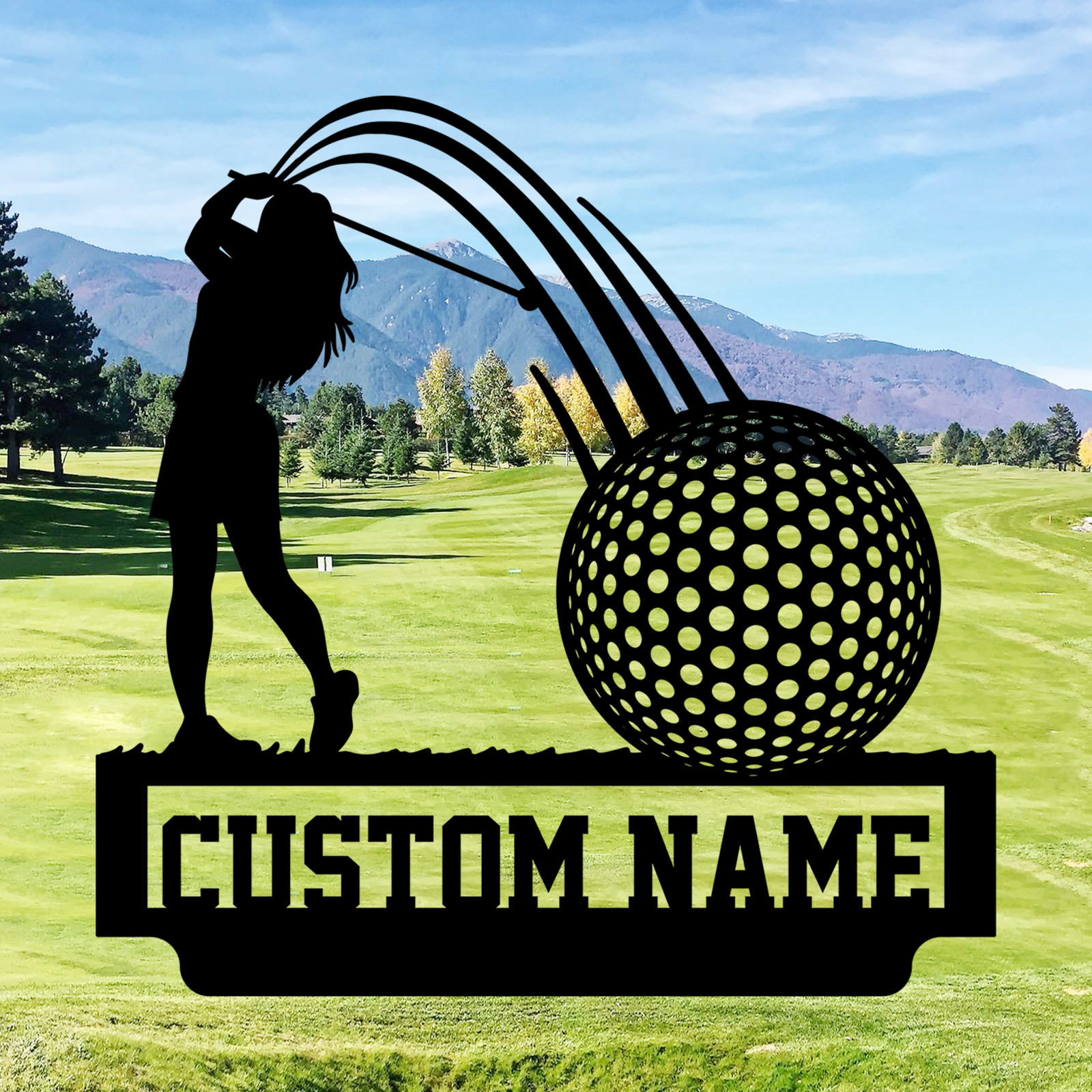Personalized Golf Scene Metal Sign, Name Plate with Moving Ball Design for Garden or Fence Decor