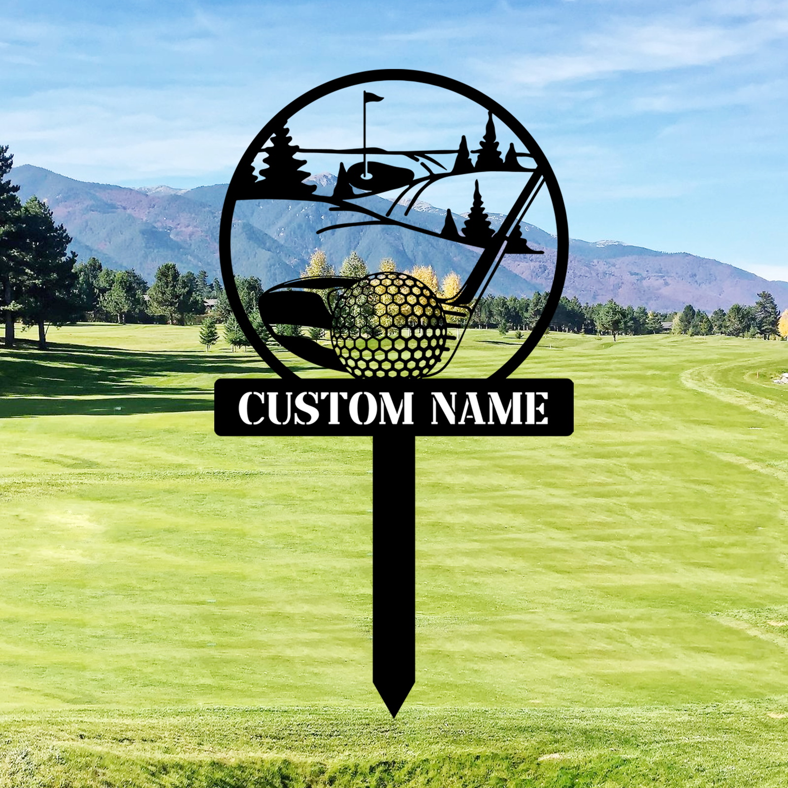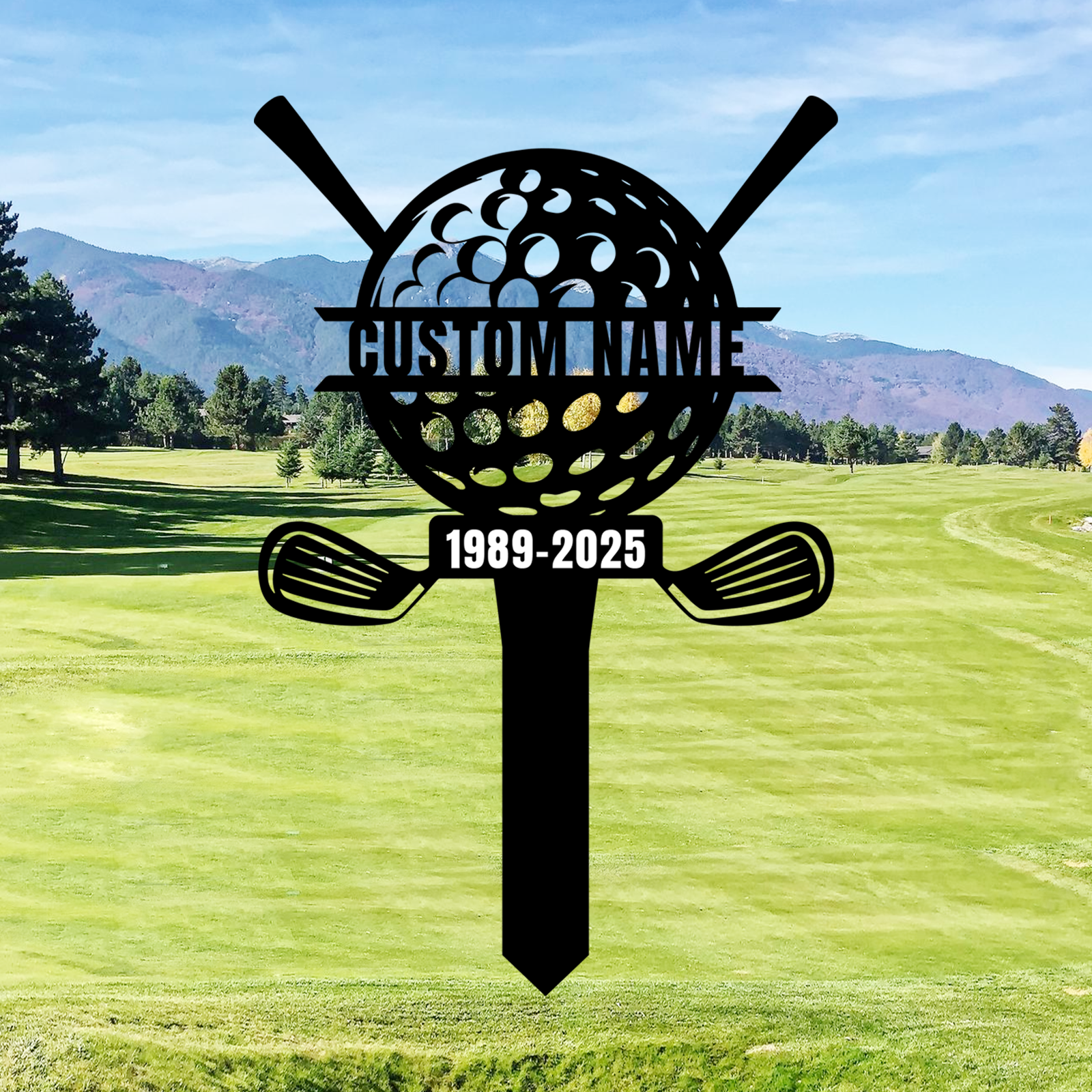 Personalized Golf Metal Sign with Tee & Ball Art, Garden Stake or Wall Mount Option for Sports Lovers