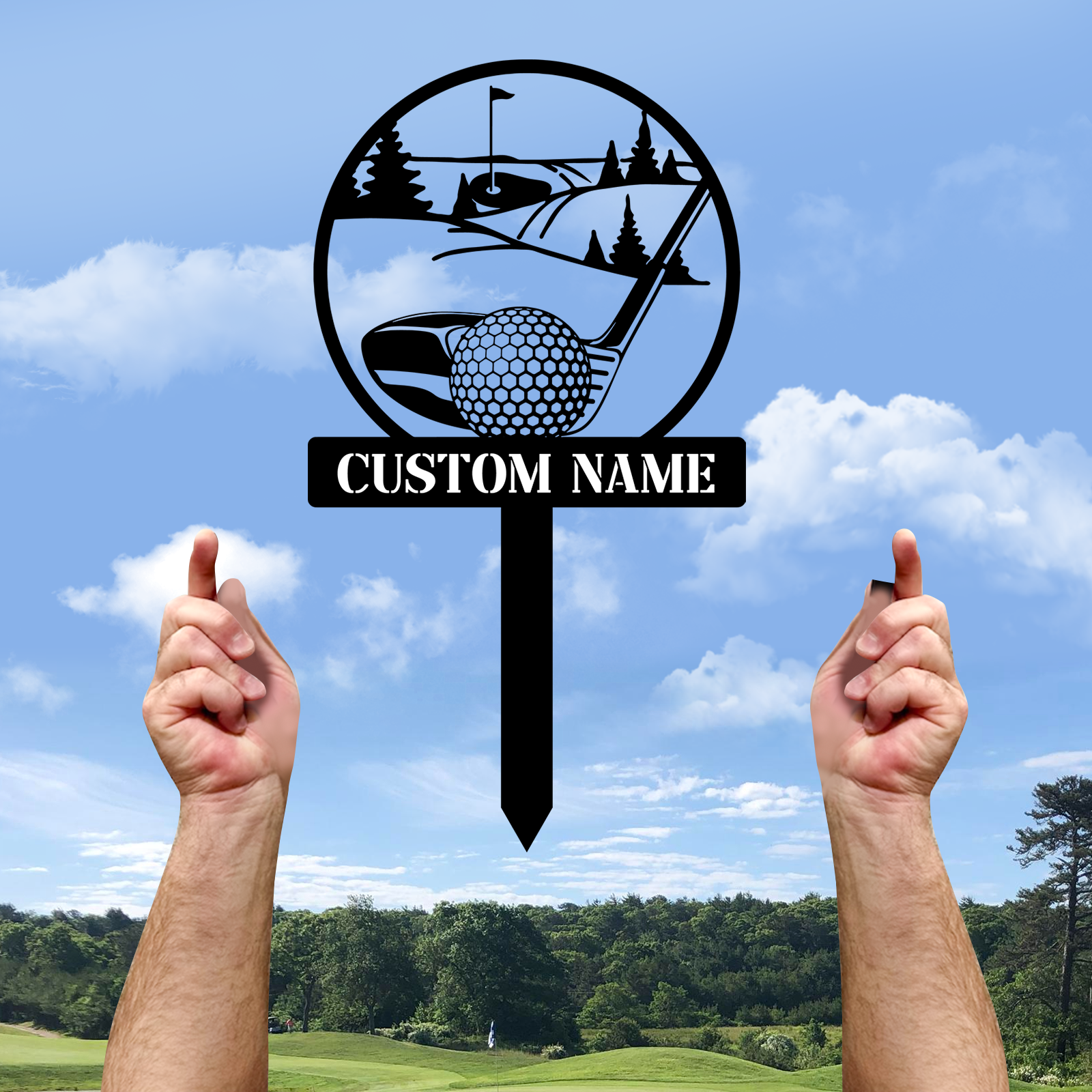 Custom Golf Name Sign for Lawn, Golf Ball Delivery Design, Personalized Outdoor Metal Stake Sign