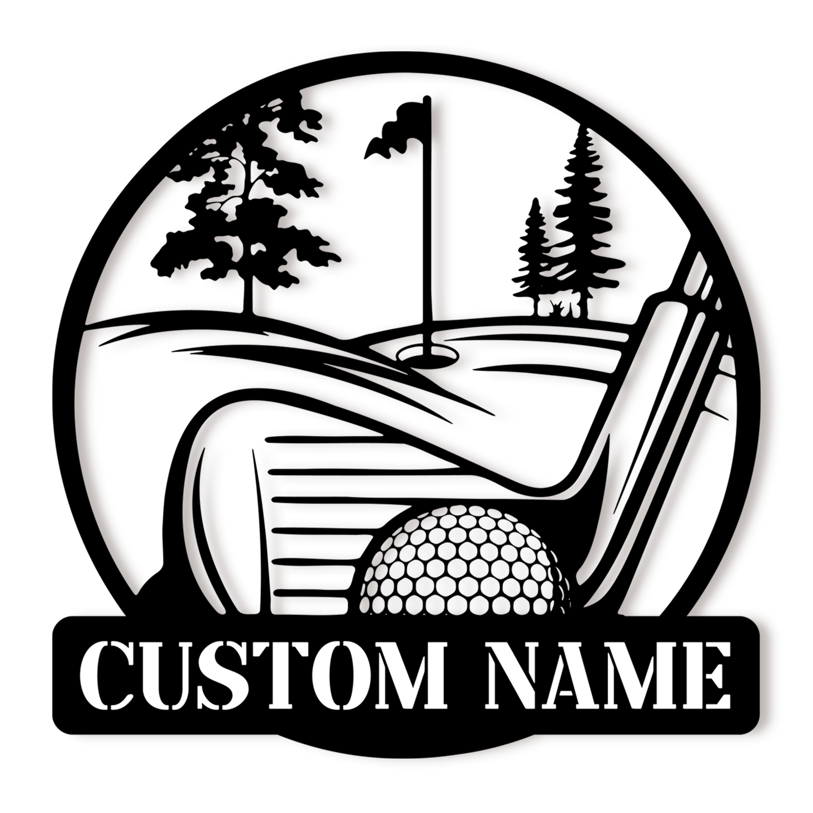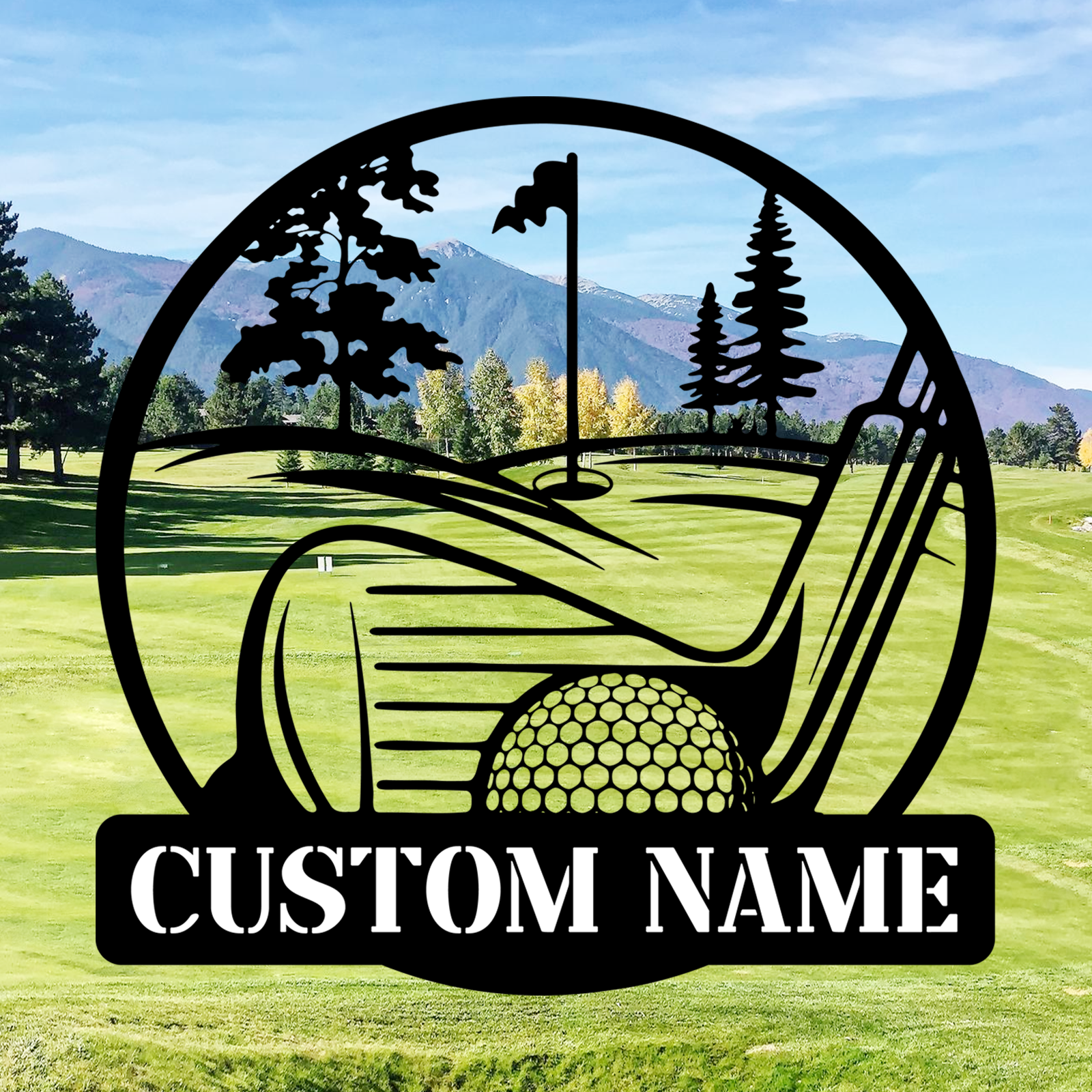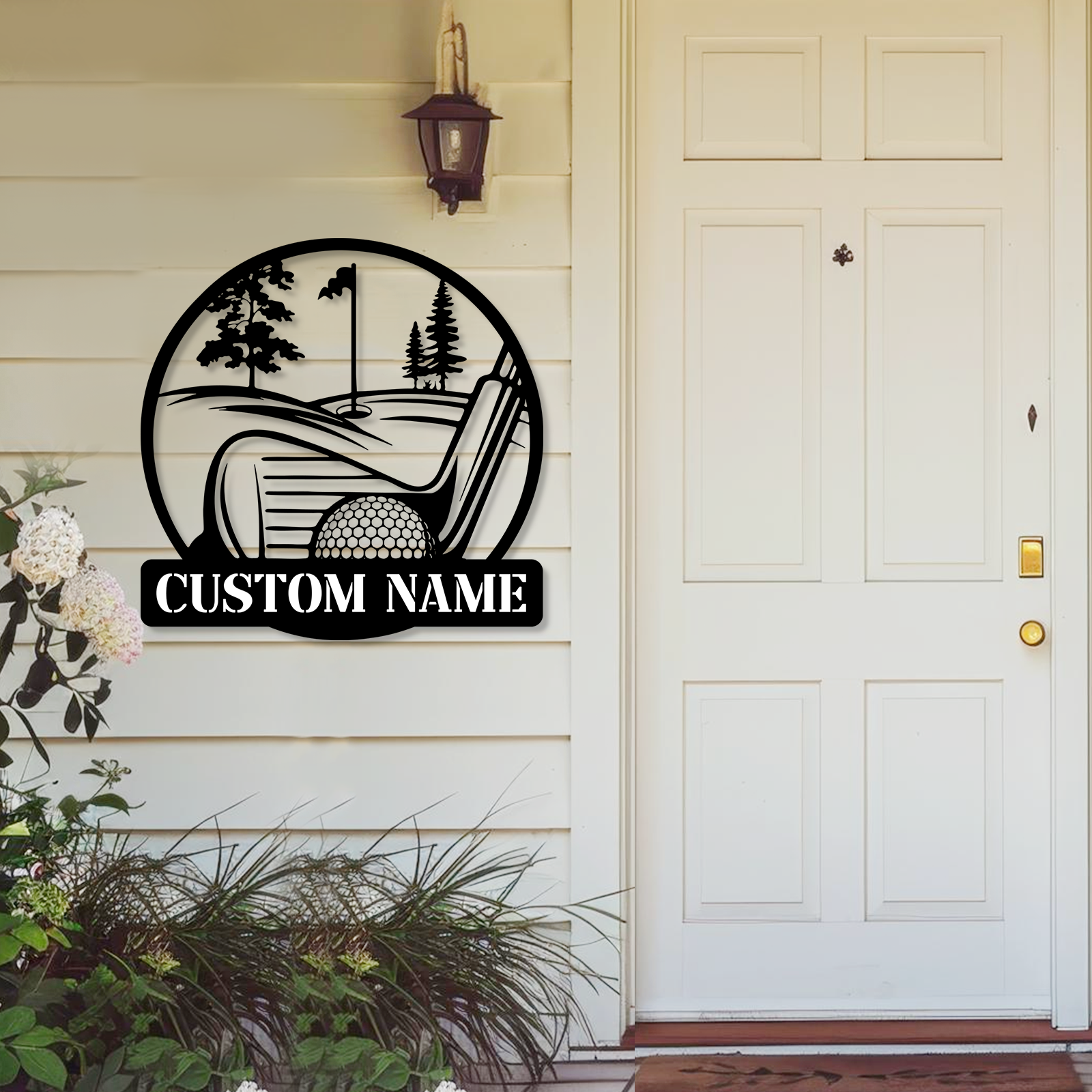 Personalized Golf Scene Metal Sign, Name Plate with Moving Ball Design for Garden or Fence Decor