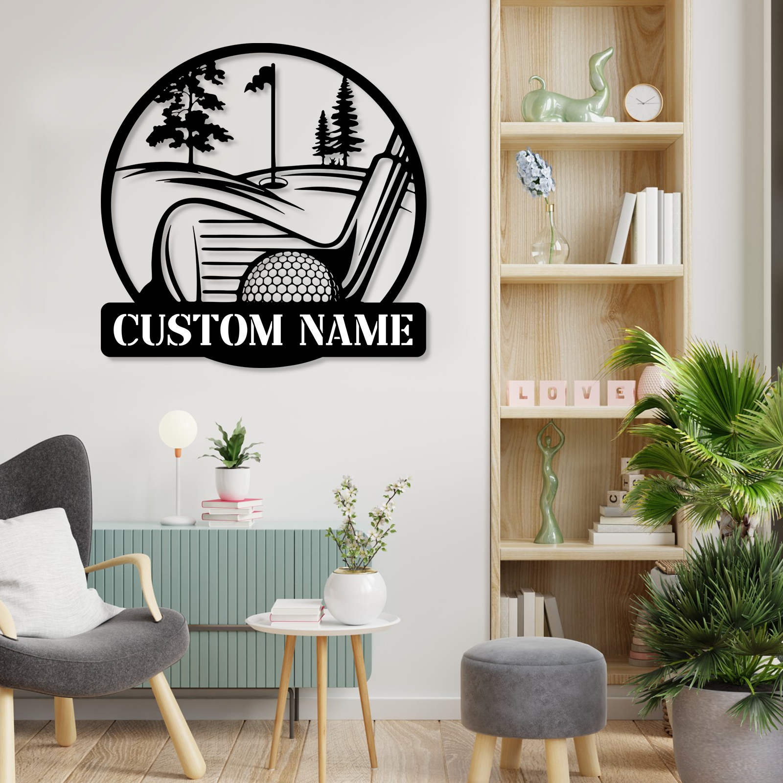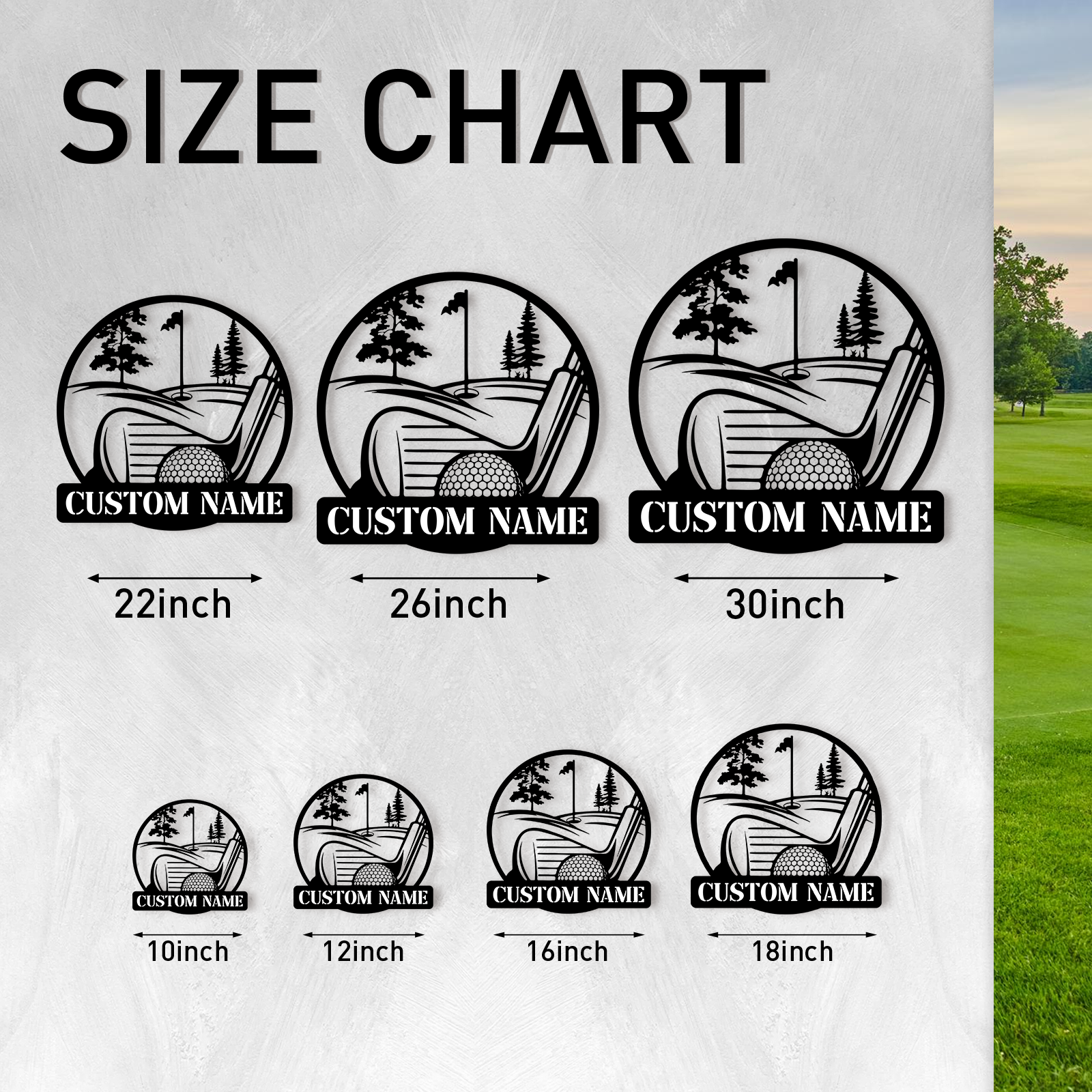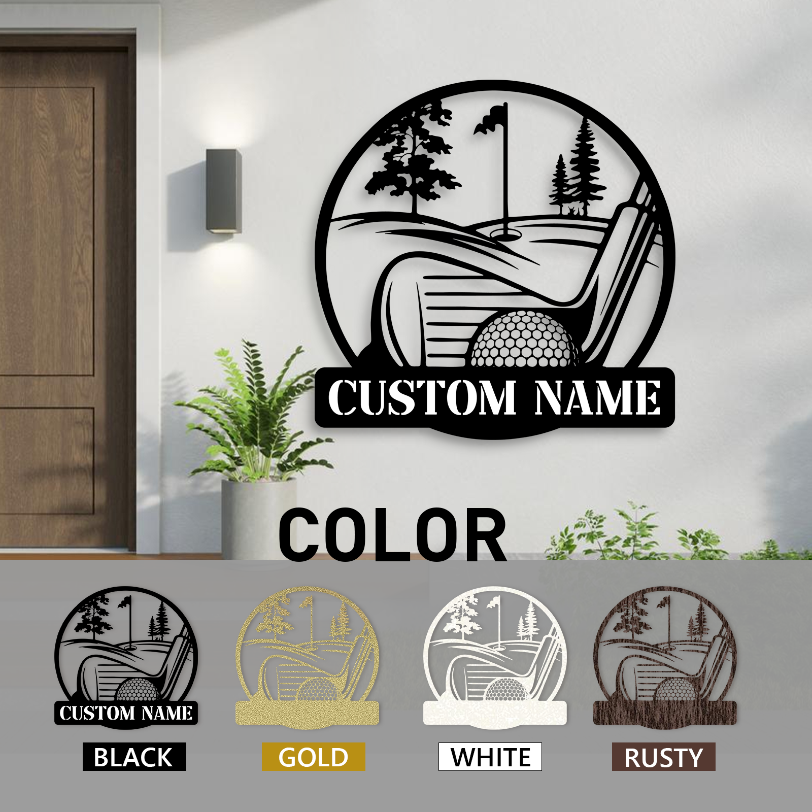 Personalized Golf Scene Metal Sign, Name Plate with Moving Ball Design for Garden or Fence Decor